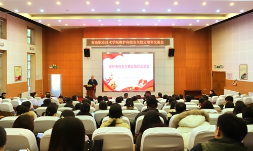 2月24日,米兰网页版在报告厅举办维护高校安全稳定培训交流会,邀请青岛市公安局开发区分局政保大队副大队长荆俊就做好维护高校安全稳定工作进行专题讲座。党委委员、副校长张旭鹏出席会议。米兰网页版宣传部、学生处、安保处等部门负责人,二级学院党总支书记、分管学生工作副书记、团总支书记、学生工作负责人、全体辅导员、五年贯通班班主任、公寓管理员共100余人参加了培训。会议由安保处副处长高利波主持。