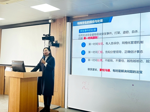 培训结束后,学生工作部相关负责同志紧扣当前大学生思想行为新特点,结合学生教育管理服务过程中的重点、难点工作,就如何做好学生在校期间的规范化、精细化管理与全体参训人员进行了研讨交流。