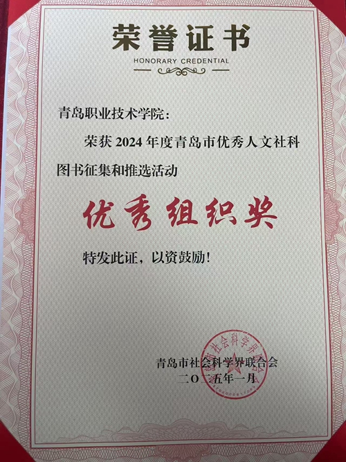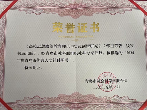 “2024年度青岛市优秀人文社科图书”荣誉证书