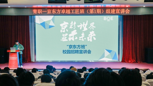 2月26日晚,信息学院在艺术厅举办了“青职-京东方卓越工匠班(第1期)”组建宣讲会。信息学院大二学生以及五年贯通培养在校学生共400余人参加了此次组班活动。活动由信息学院就业办主任卢英华主持。