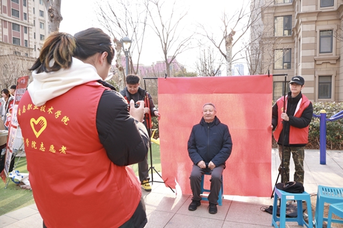 活动中,志愿者们在社区广场运用专业知识,为社区居民带来了丰富多彩的志愿服务体验。传播与策划专业的学生们为社区居民免费拍摄证件照,用镜头记录美好瞬间;“青职反诈先锋”志愿服务队向居民详细介绍了网络诈骗的常见手段及预防措施,提升居民的防诈骗意识。此外,志愿者们还通过互动游戏、沙包盲盒、禁烟海报创作等方式,积极参与到文明实践和社区治理中。在“垃圾分类我先行”模块中,社区居民通过抽取垃圾分类小卡片,参与分类投放,赢取套圈机会;在“安全我知道”模块中,志愿者以盲盒为引,带领居民们扔沙包做游戏;在“戒烟,我们击掌为约”模块中,居民们通过在画板上描绘手掌的方式,共同创作禁烟宣传创意海报,倡导健康生活方式。活动精彩纷呈,吸引了众多社区居民驻足参与,现场气氛热烈。