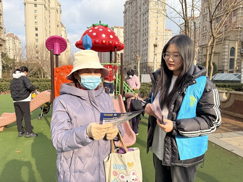 青职反诈先锋志愿服务队在社区进行反诈宣传