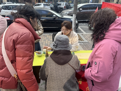 活动现场,志愿者们匠心独运,精心布置了一处古色古香的茶艺展示区。各式茶具错落有致,茶香袅袅升起,营造出一种宁静而雅致的氛围。在点茶展示环节中,来自茶艺与茶文化专业的志愿者们身着传统服饰,将细腻的茶粉轻轻置于茶盏之中,注入热水,再用茶筅快速搅拌击拂,引得围观市民纷纷投来惊叹的目光。