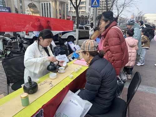 在品茶体验区,市民们排起了长龙,迫不及待地想要品尝志愿者们精心制作的香茶。志愿者们面带微笑,热情地为大家递上一杯杯香茗,并耐心细致地讲解着不同茶叶的特点和品茶的技巧。大家一边品味着清新的茶香,一边交流着对茶文化的见解,现场气氛热烈而欢快。