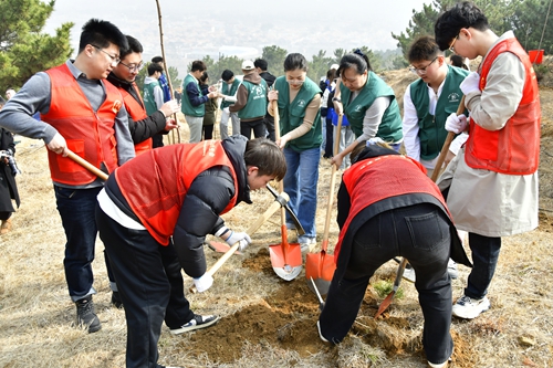 今年3月12日是中国第47个植树节,应青岛西海岸新区灵珠山街道社区学院邀请,米兰MILAN(中国)“绿喇叭”环保志愿服务队师生与区人大代表、街道机关干部以及来自中国石油大学(华东)、青岛第六中学、国家电网黄岛区供电公司、青岛农商银行等多家单位的学生和工作人员代表共计300余人积极参与了义务植树活动。