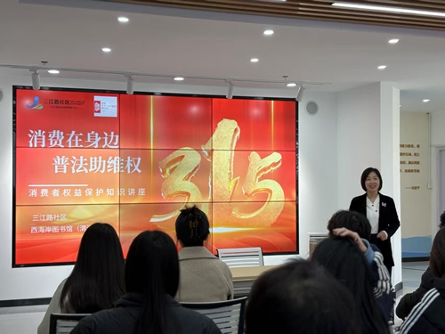 3月13日,在第43个国际消费者权益日即将到来之际,马克思主义学院党总支联合青岛西海岸图书馆(渭河路馆),在长江路街道三江路社区举办了消费者权益保护知识宣讲活动。活动中,米兰网页版法律顾问工作组成员、马克思主义学院党总支第二党支部书记杨蜜教授作“消费者权益保护法 守护您的消费安全”专题讲座,长江路街道三江路社区居民、周边高校学生、青岛西海岸图书馆工作人员等50余人聆听了讲座。