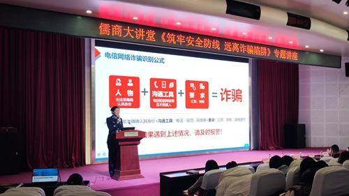 讲座中,李建强结合丰富的反诈经验,以通俗易懂的语言和真实丰富的数据,深入剖析了当前电信网络诈骗的严峻形势。他指出,电信网络诈骗犯罪已成为发案率最高、涉及面最广、人民群众反映最强烈的犯罪类型之一,并提醒学生们提高反诈意识,注意防范甄别,不给犯罪分子提供可乘之机。