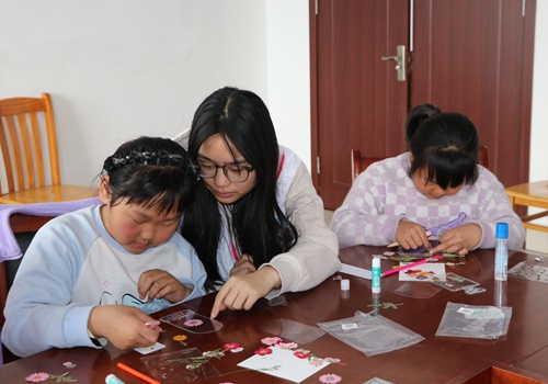 活动伊始,志愿者们通过趣味问答和动画短片向孩子们讲述植树节的起源与意义,讲解了植树对改善环境、绿化家园的积极作用,并通过丰富多彩的图片介绍了不同季节具有代表性的花草树木。此外,为使孩子们更直观地感受大自然的魅力,志愿者们带领大家利用干花手工制作春日主题的书签、贺卡和许愿卡,一张张五彩缤纷的卡片承载着孩子们纯真的梦想,也寄托着大家对美好生态环境的向往。