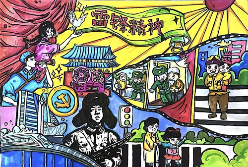 优秀手绘作品《学雷锋 树新风》