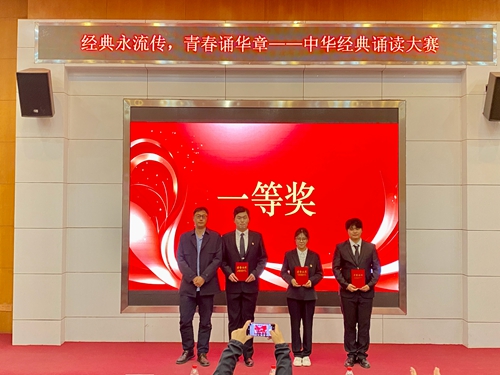 活动现场,参赛选手精神抖擞,以饱满的热情、抑扬顿挫的声调以及真挚浓烈的情感诵读经典篇章,表达了对祖国的赞美和对中华优秀传统文化的热爱。经过激烈角逐,余金豪和盛晓晴合诵的《青春中国》、吴艺欣诵读的《人民万岁》,凭借大气豪迈的表现,分别获得大赛一等奖;柳美宇诵读的《唐诗里的中国》,展现出稳健台风,荣获二等奖;孙博宇凭借浑厚的嗓音演绎《毛泽东诗词》,获得三等奖。