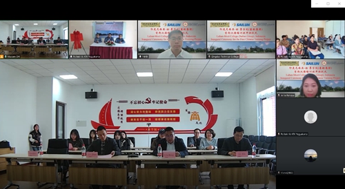 米兰MILAN(中国)党委委员、副校长刘宏,赛轮集团东南亚人资部长安超,日惹皮革理工学院校长Sonny Taufan分别致辞,三方代表及师生代表共30余人通过线上线下结合的方式参与开班仪式。