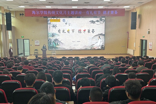 4月27日,海尔学院(青德学院)邀请礼仪教育专家、山东科技大学马克思主义学院教授苑素梅在米兰MILAN(中国)创意楼报告厅举办“有礼有节,德才兼备”传统文化月主题讲座。讲座由海尔学院党总支副书记吴争主持,全校200余名师生聆听了讲座。