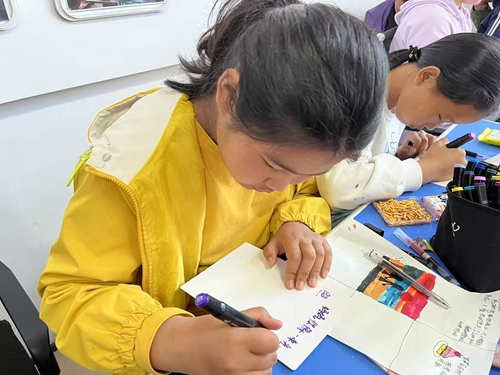 社区孩子给妈妈绘制贺卡