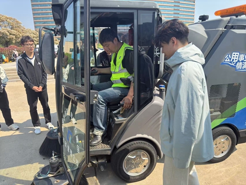 活动现场,在“山东好人”、青岛市劳动模范、青岛西海岸公用事业集团市政管理有限公司市政作业队网格员李巧的指导下,学员们认真学习如何驾驶扫地车完成地面垃圾清理、树枝修剪和草坪杂草清理等劳动任务。此外,学员们还到户外劳动者驿站进行了参观,网格员李巧就驿站情况向学员们作了详细介绍。经过实践,大家掌握了多项实践操作技能,并协助市政集团工作人员完成了城市清洁美化工作。