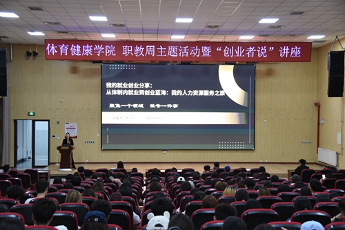 5月15日晚,体育健康学院在创意实训楼B401举办2025年职教周活动之“创业者说”讲座,邀请青岛世康医疗服务有限公司法人、总经理崔素霞分享创业和就业经验。体育健康学院党总支副书记王智洋及400余名师生参加了活动。