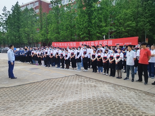 为进一步增强后勤服务人员的消防安全意识,提高认识火灾、预防火灾、处置火灾能力,5月15日下午,后勤管理处联合安保处邀请青岛开发区消防救援大队江山路救援站站长聂昌宝来校开展消防安全知识培训和消防安全演练。后勤管理处、安保处相关工作人员,食堂、商贸服务各网点及物业等第三方从业人员200余人参加了活动。