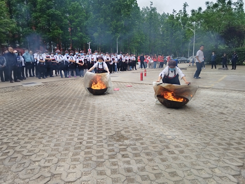 活动中,聂昌宝结合火灾事故案例以及日常生活和工作实际,生动形象地讲解了消防安全知识,并对遇到紧急情况下灭火方式的选择及灭火器材的正确使用、撤离火场的基本要求及基本逃生技能,作了翔实的讲解。随后,对灭火器、灭火毯等灭火器材进行了实操演练。最后,在食堂开展了逃生疏散演练。