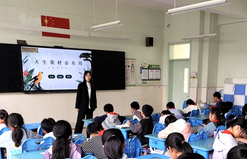 5月16日,立信书院“青小信·心起点”志愿服务分队的30名志愿者走进黄岛小学,为四、五年级9个班级的360余名学生开展“时代少年 阳光成长”主题支教活动,以课堂教学、互动实践及感悟分享等形式,为小学生们带来了一堂心理健康教育课。