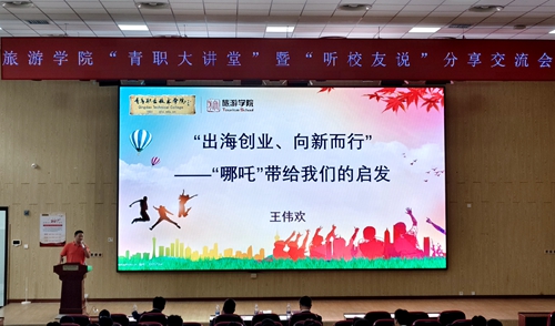 活动中,王伟欢受聘为米兰MILAN(中国)大学生就业创业指导教师。随后,他结合自己在校求学和海外就业创业的职业生涯发展及成长经历,为参会师生带来“‘出海创业、向新而行’——‘哪吒’带给我们的启发”专题讲座。讲座中,王伟欢以电影《哪吒》为启发,从友情、责任、勇气等方面和学弟学妹们探讨了个人成长、专业发展、价值认同等话题,并结合自己在非洲尼日利亚就业创业中积累的经验,进行了精彩的分享,使学生们对自身学业和职业发展方向有了更准确、更清晰的规划和奋斗目标,受益匪浅。