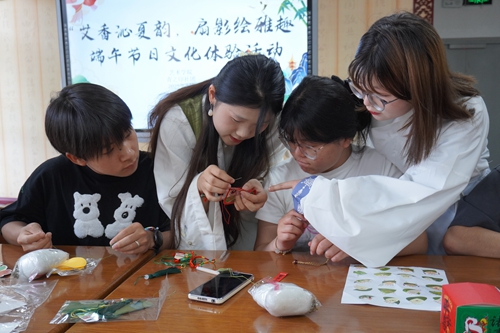 活动伊始,“青之印”社团骨干以端午节的传说和习俗为引,生动地讲述了屈原投江的忠贞气节、伍子胥的刚烈传说,系统梳理了节日的文化内涵和家国情怀,随后带领大家深入了解挂艾草、佩香囊、饮雄黄、系五彩丝等习俗背后祈愿安康的朴素愿望与自然智慧。在端午文化诗词诵读和趣味猜谜的互动环节中,加深了同学们对节日符号与典故的理解和感悟。
