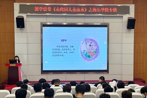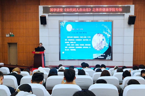讲座以“宋代词人在山东”为主题,通过宋代词人与山东历史的渊源,着重介绍了苏轼、李清照、辛弃疾3位词人,结合他们在山东的经历及创作的经典词作,带领同学们一起深刻感受山东的历史文化底蕴、宋词的艺术文化魅力,并在词人的传世佳作中领悟人生价值与意义,体会宋代词人的家国情怀,引导同学们从中华优秀传统文化中汲取智慧与力量。