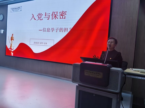 李明杰对9名学生的讲座进行了点评,并以“入党与保密-—信息学子的担当”为主题作讲座,从党的基本理论知识、入党流程、学生党员责任与义务、保密意识教育、保密法规等方面进行了讲解。最后,全体同学合唱了歌曲“团结就是力量”。