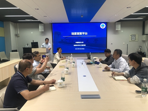 交流座谈中,中国海洋大学团队重点介绍了海洋物联网平台——“琏雾慧聚平台”,并详细介绍了多个海洋智能应用场景系统,涵盖了海洋生态环境监测、海洋灾害预警等多个领域,充分展现了海洋电子信息技术在海洋领域广阔的应用前景。随后,双方就海洋电子信息相关专业建设、技能大赛以及应用技术课题的可行性与合作方案展开了深入沟通。
