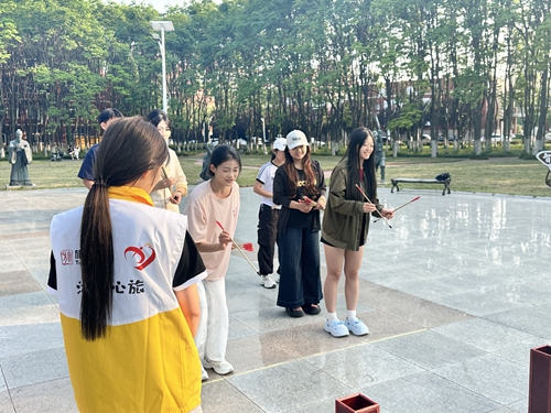 “树叶上的心理密钥”活动通过在心理健康教育展板上悬挂心理学知识便签,让学生在日常行走中接触心理健康知识,学会情绪管理、压力应对等实用技巧,以轻松有趣的方式普及心理学常识;团队建设活动“合作投壶”将传统投壶游戏与现代团队训练相结合,学生们分组协作,通过制定团队规则、完成投壶挑战等环节,培养沟通协作能力;“掌纹间的温暖共振”活动采用艺术疗愈方式,引导学生通过手掌绘画表达内心情感,创作完成的优秀作品在校园展出,形成独特的“情感画廊”,为同学们提供情感表达的窗口;“影韵心声”观影活动精选心理题材影片配合专业讲解,帮助学生通过观影进行自我反思;音乐疗愈心灵体验则通过舒缓旋律帮助学生放松身心,培养学生们积极乐观的良好心态。