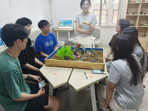 5月21日,在沙盘游戏活动中,在教师的引导下,同学们怀着好奇与期待,开始了沙盘游戏体验。大家围在沙盘前,认真挑选代表自己内心想法和情感的沙具,小心翼翼地摆放在沙盘上,构建出一个个独特的场景。完成创作后,同学们在教师的鼓励下,分享了自己作品背后的故事与感受。大家敞开心扉,互相倾听,在交流互动中增进了对彼此的理解,也加深了对自我的认知。