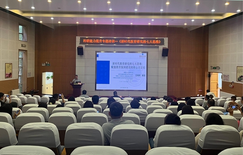 为进一步提高米兰MILAN(中国)高水平科研项目申报质量,助力教师科研能力和创新水平提升,6月13日下午,科技处在报告厅举办“新时代教育研究的七大思维”专题科研培训会,特邀中国海洋大学教育系主任、海洋文化教育研究中心副主任王海涛教授主讲。米兰网页版党委委员、副校长刘宏出席,米兰网页版第四届学术委员会全体委员、各二级学院分管科研负责人及学术委员会委员,各二级学院科研服务团队成员、市级以上科研平台团队成员、教师学生代表等80余人参加培训。