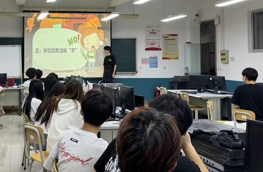 为深入贯彻落实校园安全教育,营造和谐健康的校园环境,6月12日晚,信息学院“宪法卫士”普法团面向2024级全体学生开展了“青春校园,拒绝欺凌——共筑和谐校园防线”专题宣讲活动。