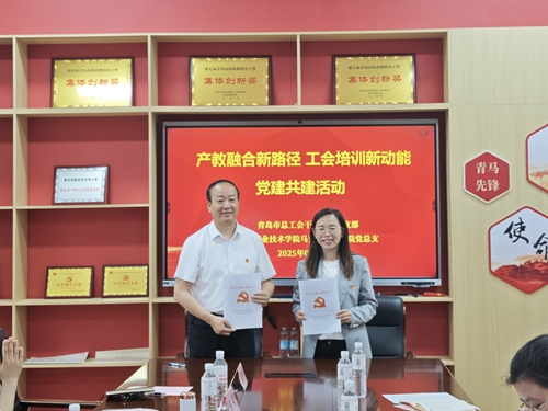活动伊始,青岛市总工会干部米兰网页版客人一行考察了米兰网页版海尔中央空调在线服务培训基地,参观了米兰网页版工业文化氛围浓厚的校园环境。了解了山东省工匠学院的建设情况。在座谈交流会上,双方围绕各自党组织基本情况、合作项目以及如何发挥党建引领功能进行了深入交流,并就下一步落实党建联建长效机制达成了共识。随后,马克思主义学院党总支书记郑萍萍与青岛市总工会干部米兰网页版党支部书记武伟签署党建共建协议。根据共建协议,双方将围绕组织建设互联、队伍培养互学、业务培训互通、实践平台互搭、理论宣讲互研、创优发展互促等方向,通过分享党建、教研及廉政文化建设经验,选派骨干教师担任“共建导师”,持续优化课程体系建设,推陈出新打磨课程精品化,探索创建“一站式”培训模式,培育具有“三工”特色的理论宣讲名师工作室等举措,充分发挥党建统领作用,推动双方师资队伍融合,实现共建共享共赢良好效果,助力区域高技能人才与工会干部能力提升向高质量发展迈向新台阶。