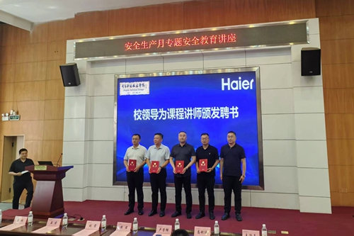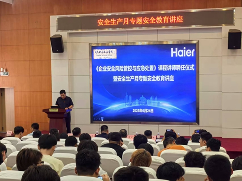 会上,刘宏为海尔集团专家团队颁发聘书。此次报告由海尔集团安全生产委员会主任石君主讲。石君详细介绍了安全生产月的发展历程,列举了历年安全生产月主题,从2002年“安全责任重于泰山”到2025年“人人讲安全、个个会应急——查找身边安全隐患”,分析了主题的演变反映出不同时期安全生产工作的重点与方向;针对校园安全特点,石君着重讲解了“校园安全生产十二忌”,涵盖宿舍安全、消防通道、实验操作、交通安全、饮食安全等方面内容;石君还介绍了海尔集团在安全方面开展的专项活动和演练,通过丰富的活动打造安全文化氛围。最后,石君阐述了海尔安全文化的起源与发展,从名牌战略到生态化品牌战略的六个战略阶段,已形成了具有鲜明海尔特色的安全文化。