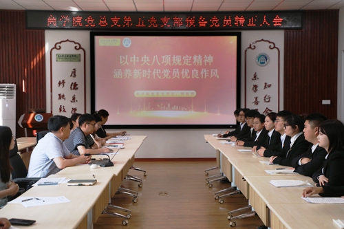 6月24日,商学院党总支第五党支部在创意楼A304室召开预备党员转正大会,并为毕业生党员讲授“最后一次党课”。商学院党总支负责人、第五党支部全体党员及13名预备党员共同参与。活动以严格程序、深刻教育、殷切嘱托为主线,为毕业生党员的校园征程画上红色注脚。