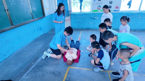 实践团队走进咸庄完小,发挥体育专业优势,为村里30余名学生开展“护航成长”六模块公益课堂。通过武术展现中华传统体育魅力,借体适能训练激发运动热情,同时穿插运动常识讲解、防溺水宣传、营养健康科普与急救技能教学。活动点燃了孩子们对体育的热爱,帮助他们解锁科学运动与健康生活的知识密码,用体育力量为乡村童年绘上活力底色。
