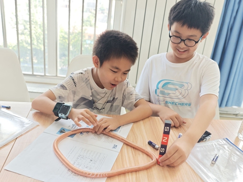 研学课程由旅游学院研学专业带头人那英志教授开发设计并主讲,研学专业全体教师全程按照专业的研学手册分工开展项目的实施和运营管理,学生分组担任课程助教和生活导师,协助主讲教师完成实验演示,负责对学员小组进行指导、安全管控、活动组织等全流程工作。五天的课程分别开展了蒸汽机车的“运行密码”、飞机的“飞行秘密”、伯努利和牛顿的空气魔法、电磁的“隐形力量”和池塘里的远航五大主题项目,将抽象的物理原理转化为生动有趣的实验体验场景。研学实践中,小学员们全情投入,被一个个神奇实验所吸引,展现出满满的好奇心和旺盛的求知欲,通过动手实操一个个物理实验,体验、感受、探索了物理世界的神秘与乐趣。
