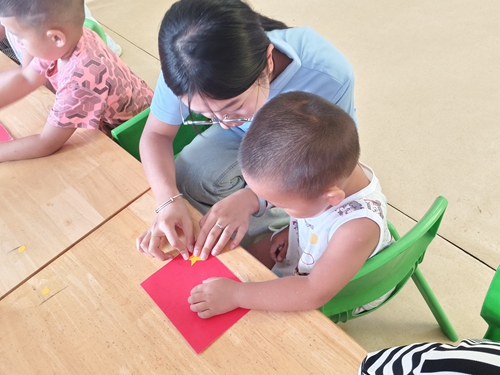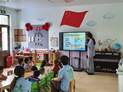 此次社会实践活动围绕暑期安全教育、爱国启蒙教育、传统文化教育、安全教育、环创制作、宣讲托育政策等内容展开,精心设计面向农村孩童的主题教育课程,尽可能地为他们提供全方位的教育辅导。活动开展过程中,志愿者们按照课程安排,带领孩子们开展了“制作五星红旗”“我们的春节”等红色爱国启蒙和传统文化教育活动,在寓教于乐中激发孩子们的爱国热情和对传统文化的认同。根据乡村孩子面临的实际情况,志愿者们在安全教育主题课程之中穿插了暑期防溺水、防火、防触电和防交通事故等内容,提升了孩子们的安全意识,帮助孩子们度过一个安全的假期。课程闲暇之余,志愿服务队成员们充分发挥专业优势,自己准备材料,变废为宝,帮助托育中心新园区进行环创制作,为孩子们提供一个温馨的学习生活环境。