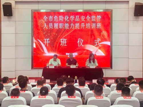 8月20日上午,全市危险化学品安全监管人员履职能力提升培训班开班仪式在米兰MILAN(中国)举行。市应急管理局党委委员、副局长吴法先,校党委委员、人事处处长田秀丽出席仪式,来自全市各区市应急管理局的44名学员参加仪式。