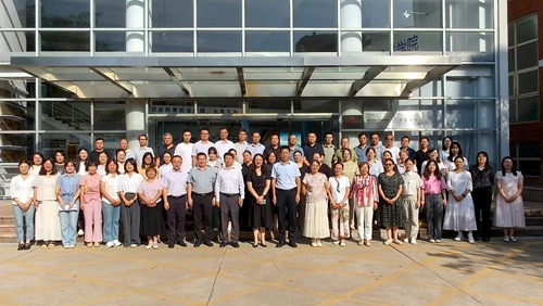 校领导与海尔学院全体教职工在致用楼门前合影留念