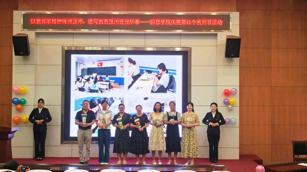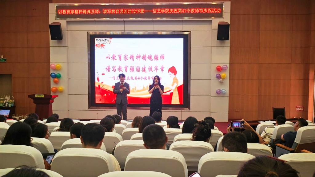 9月11日下午,信息学院在报告厅举办“以教育家精神铸魂强师,谱写教育强国建设华章”教师节庆祝活动。信息学院全体教师以及部分学生代表参加了此次活动。