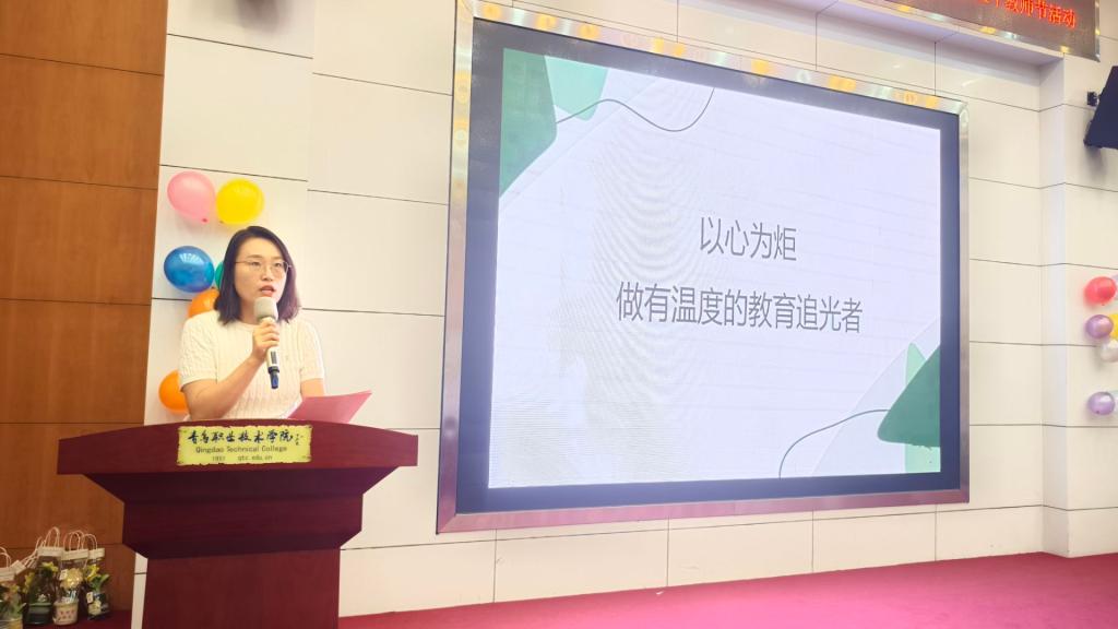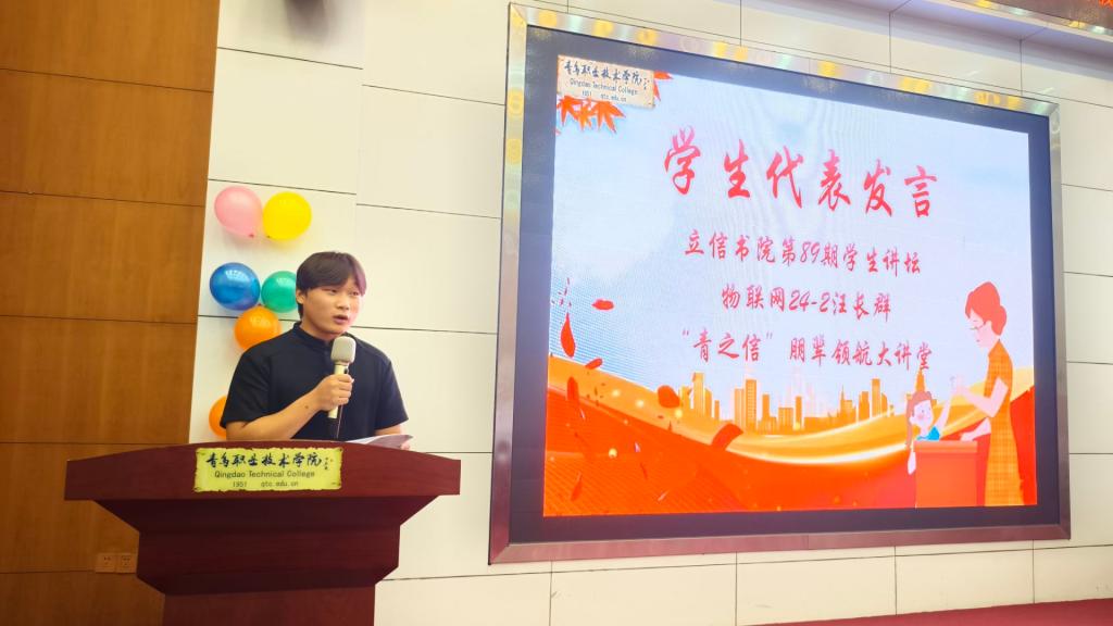 教师段胜男通过舞蹈《骁》表现了革命先驱们无惧困难的爱国精神;学生代表郑子豪倾情独唱《如愿》,深情演绎了对老师的感恩之情;立信书院学生现场制作展示了“扭扭花束笔筒”并亲手赠予老师。全体教师集体诵读教育家精神,掷地有声的声音响彻会场,表达了“心有大我、至诚报国的理想信念”。“立信之声”合唱团献唱《最美的太阳》,用歌声致敬师恩;学生朗诵队朗诵《盛大的回响》,以青春之名回应师恩。此外,第89期“青之信”朋辈领航大讲堂同步举行,学生汪长群分享了在老师们帮助与指导下参加大赛的感悟。