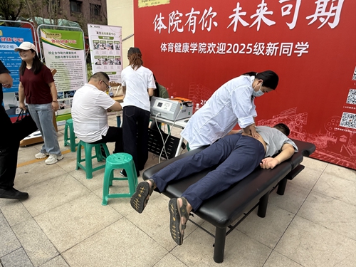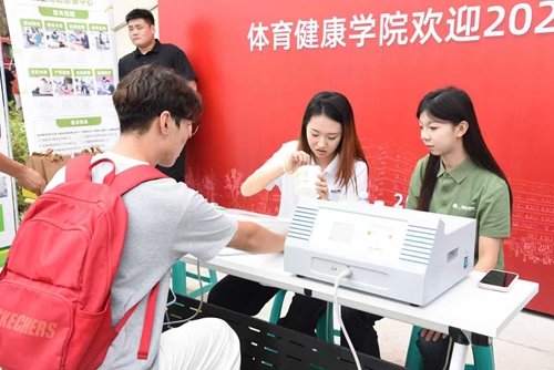 大手新华锦、全时健身、夏至运动康复等多家企业派出康复师、运营总监等企业代表,在迎新现场开展专业服务与体验,并为新生和家长提供饮用矿泉水,协助学院更好地为新生答疑解惑,树立正确职业导向。