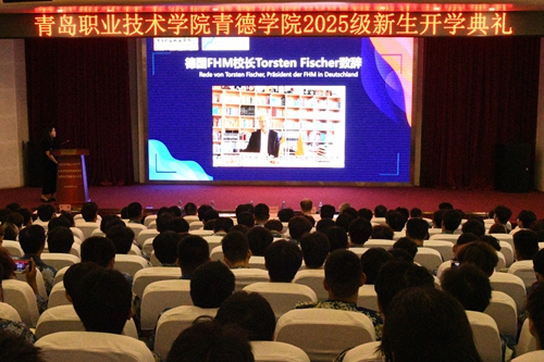 会上,德国比勒费尔德中型企业应用技术大学副校长Torsten Fischer通过视频形式致辞,鼓励青德学院的新生们利用国内学习时间,打好专业和语言基础,为将来赴德深造做好准备。