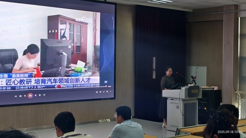 活动伊始,全体教师集中观看了纪录片《2025年全国“最美教师”杨洋:匠心教研培育汽车领域创新人才》。影片记录了杨洋老师在汽车专业教育领域潜心教研、精益求精的感人事迹,展现了她将专业教育与思政育人相融合的先进理念。