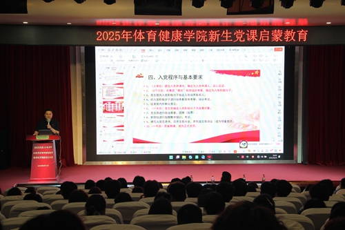 9月24日,体育健康学院党总支在米兰网页版艺术厅开展了2025级新生党课启蒙教育。体育健康学院党总支、团总支相关负责人,2025级辅导员共同参与,为全体新生开启了一堂兼具思想深度与专业特色的启蒙教育课。