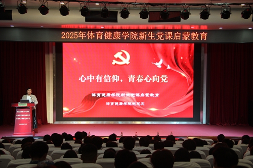 此次主题教育由体育健康学院党总支书记张慧主讲,内容围绕体育强国、体育精神和坚定信仰展开。张慧结合习近平总书记关于体育强国建设的重要论述,阐释了体育与国家强盛、民族复兴的紧密关联。通过奥运史上的经典案例,解读了奥运精神的内涵,并分享了优秀体育学子以专业践行担当的成长故事,进一步引导新生将个人理想与党的使命、国家需要相结合,坚定信仰,不断成长。随后,体育健康学院学生党支部书记尹衍杰为新生详细讲解了相关入党程序和注意事项。