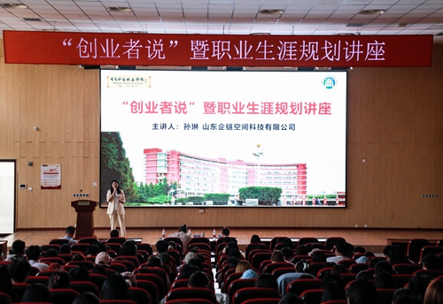 9月25日下午,商学院在创意实训楼B401教室举办“创业者说”暨职业生涯规划讲座。活动特邀山东企链空间科技有限公司创始人兼董事长孙琳担任主讲嘉宾,从创业者的视角为200余名师生带来一场关于职业规划与就业选择的深度分享。