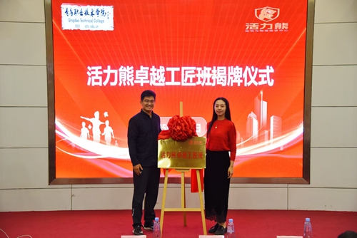 体育健康学院党总支副书记王智洋和活力熊创始人韩旭共同为实践基地揭牌