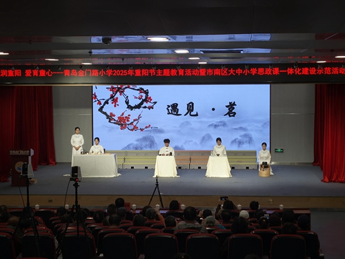 为深入传承和弘扬中华优秀传统文化,推进大中小学思政课一体化建设,10月28日,由市南区教体局主办的“德润重阳爱育童心”2025年重阳节主题活动暨青岛市市南区大中小学思政课一体化建设示范活动在青岛金门路小学开展。作为思政一体化实践基地成员之一,旅游学院师生受邀参加路演。