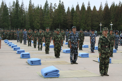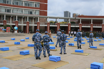 9月22日,海尔学院、旅游学院和知行书院在回音广场共同举办2015级新生叠军被大赛。学生处、海尔学院,旅游学院、知行书院的相关负责人参加了此次活动,6名军训教官担任大赛评委。